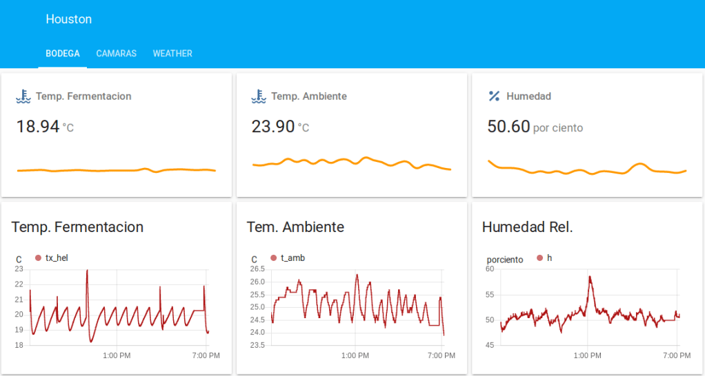 Además, puede arrancar y parar la heladera para mantener el vino a la temperatura deseada, 20 C durante la fermentación primaria y 18 C durante la fermentación secundaria. La figura siguiente muestra una imágen que presenta el servidor.